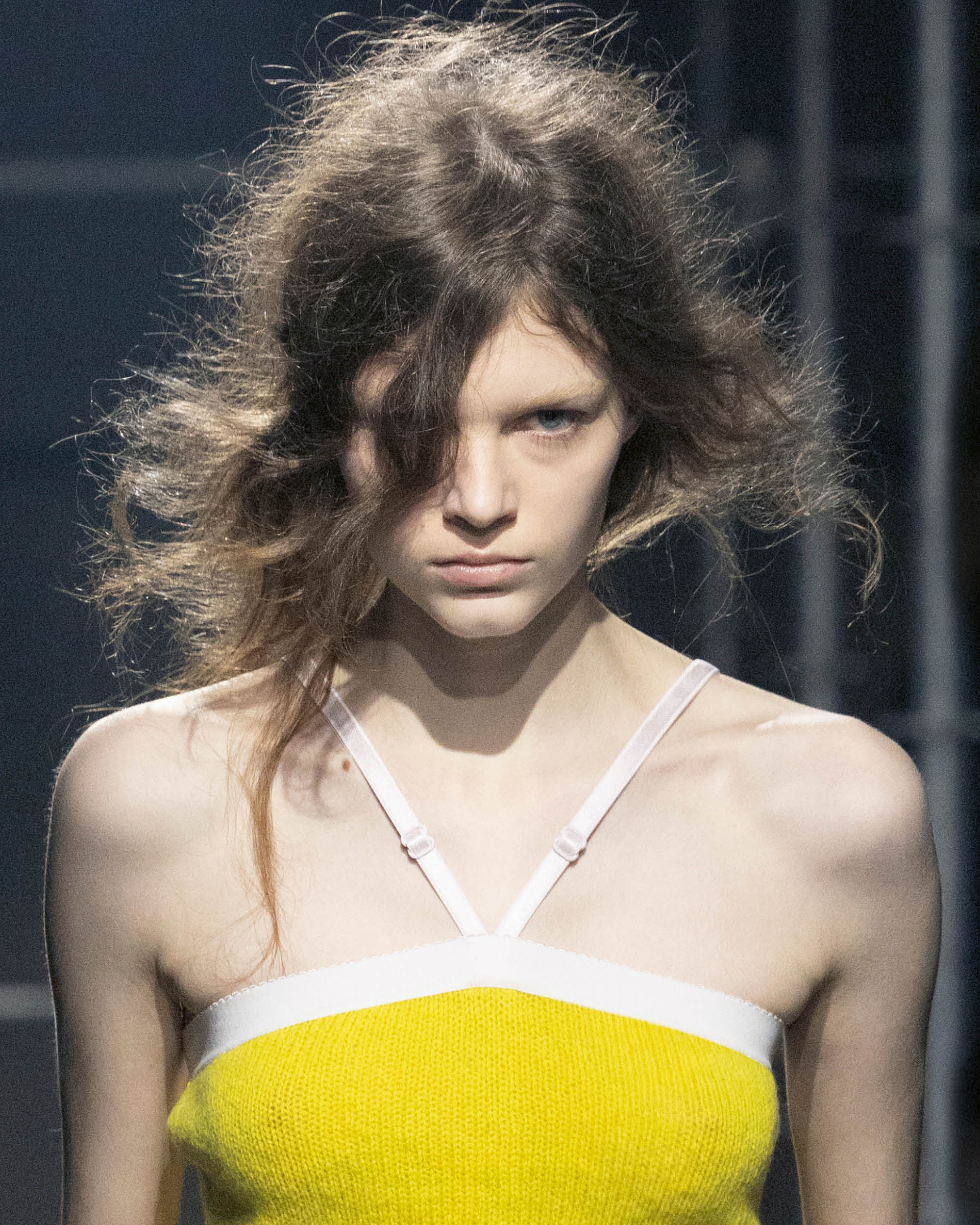 Dans un autre genre de bovarysme, le nouvel archétype de la femme au bout du roul’ est l’(anti)-héroïne du best-seller d’Ottessa Moshfegh Mon année de repos et de détente. Dans ce roman publié en 2019 (éditions Fayard), elle choisit de tout plaquer pour entamer une longue hibernation en s’assommant de somnifères. En 2025, la même autrice signait Ten Protagonists, un recueil de nouvelles afin de promouvoir la collection printemps-été de Prada, dont les dix personnages féminins étaient incarnés par l’actrice britannique Carey Mulligan dans la campagne de la marque. Pour cette collection, “nous avons pensé chaque individu comme un superhéros, avec son propre pouvoir, sa propre histoire”, a déclaré Raf Simons, codirecteur créatif de la maison italienne. Du côté de la cabine beauté, Lynsey Alexander, Global Creative Makeup Artist de Prada Beauty, avait imaginé des maquillages contrastés. Certains mannequins arboraient des sourcils marqués, réalisés à l’aide de mascara et de crayons pour les yeux. D’autres au contraire avaient les sourcils éclaircis, voire complètement effacés, mettant en valeur la structure naturelle de leur visage. Et alors qu’on célèbre l’individualité sur les podiums, le hashtag #messy prend, lui aussi, de l’ampleur sur les réseaux. Après la vague des tutos make-up pour mieux définir ses cernes, afficher un lifestyle chaotique (se coucher tard, dormir peu, faire la fête, ne pas se laver les cheveux) est devenu une lame de fond. Médiatisé par le fameux Brat Summer de Charli XCX (“Vous êtes cette fille un peu désordonnée qui aime faire la fête, dire des choses stupides parfois, un peu volatile, parfois imprévisible.