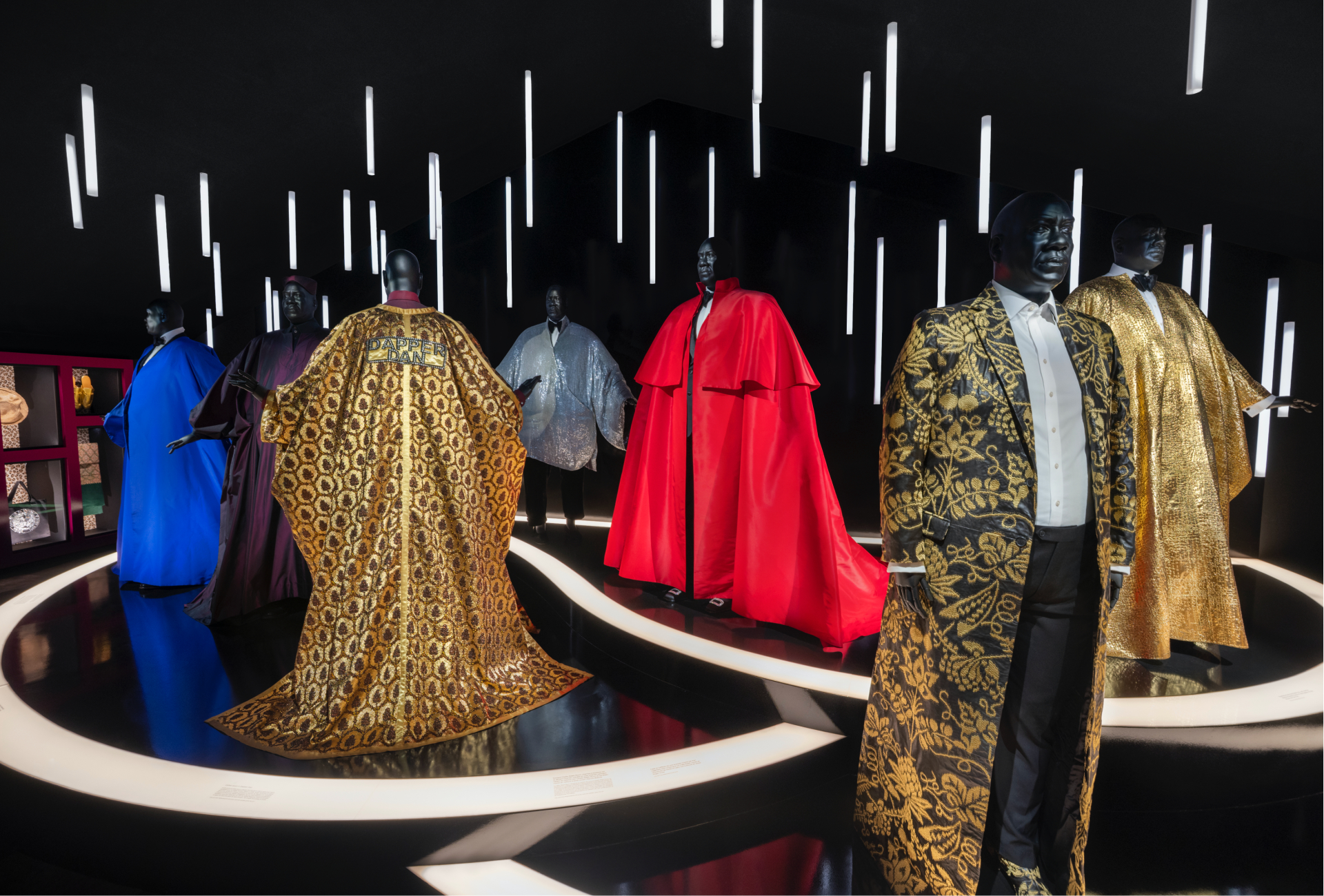 Présentées sur des mannequins sur mesure moulés à partir d’une sculpture de Talley réalisée par l’ancien élève de la SCAD Stephen Hayes, ces silhouettes, entre costumes, caftans et capes, incluent des pièces de Karl Lagerfeld pour Chanel, Nicolas Ghesquière chez Balenciaga, Dior époque de John Galliano, Yves Saint Laurent, Hermès, ou encore Roger Vivier. Aux côtés des tenues de Talley, on trouve aussi une sélection de huit robes de soirée portées par des amies célèbres dont certaines qu’il avait accompagnées au fameux Met Gala, parmi lesquelles Renée Zellweger, Anne Hathaway, Anna Wintour et Lauren Santo Domingo. Enfin, l’exposition se complète d’environ 60 accessoires et objets personnels issus des archives de cette figure emblématique de l’industrie, avec par exemple des œuvres d’art, des lettres et des livres, mais aussi une sélection de 50 photographies.