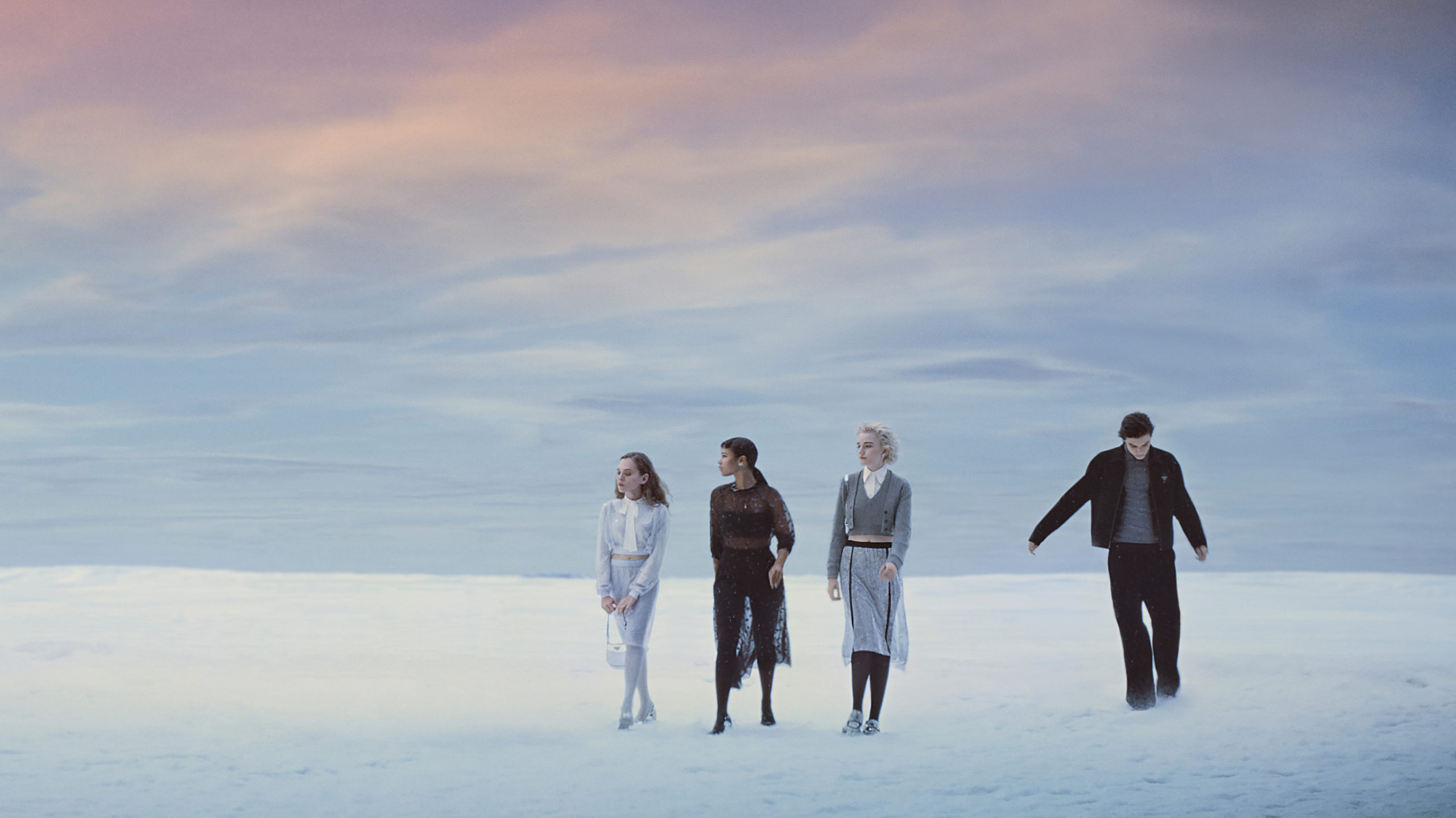 Avec « A Midwinter’s Night Dream », le court-métrage de la dernière campagne Holiday 2021 de Prada, la marque italienne nous donne à voir une scène fantasque quelque part entre « Le jour d’après » et « Fargo » : la ville de Los Angeles drapée dans une épaisse couche de neige. Une scène quasi surréaliste puisque les dernières (mini) chutes de neige dans la cité des anges remontent à 1962. Fusionnant mode et cinéma, la maison Prada a choisi un casting de jeunes acteurs hollywoodiens, Julia Garner (« Ozark », « Inventing Anna »), Shira Haas (« Unorthodox »), Louis Partridge (« Enola Holmes ») et Taylor Russell (« Waves ») pour peupler ce fantasme d’un Los Angeles polaire et pour sublimer la nouvelle collection Holiday 2021. Derrière la caméra, le réalisateur Glen Luchford, avec qui la maison italienne aime collaborer depuis les années 90. Les images de la campagne sont tirées des images fixes du film et se veulent délibérément cinématographiques, avec des panoramas et des scènes qui évoquent le grand écran. Sur cette note, A « Midwinter’s Night Dream » s’est également appuyé sur un outil d’effets virtuels connu sous le nom de Volume, qui a été conçu pour la série Disney + « The Mandalorian ».