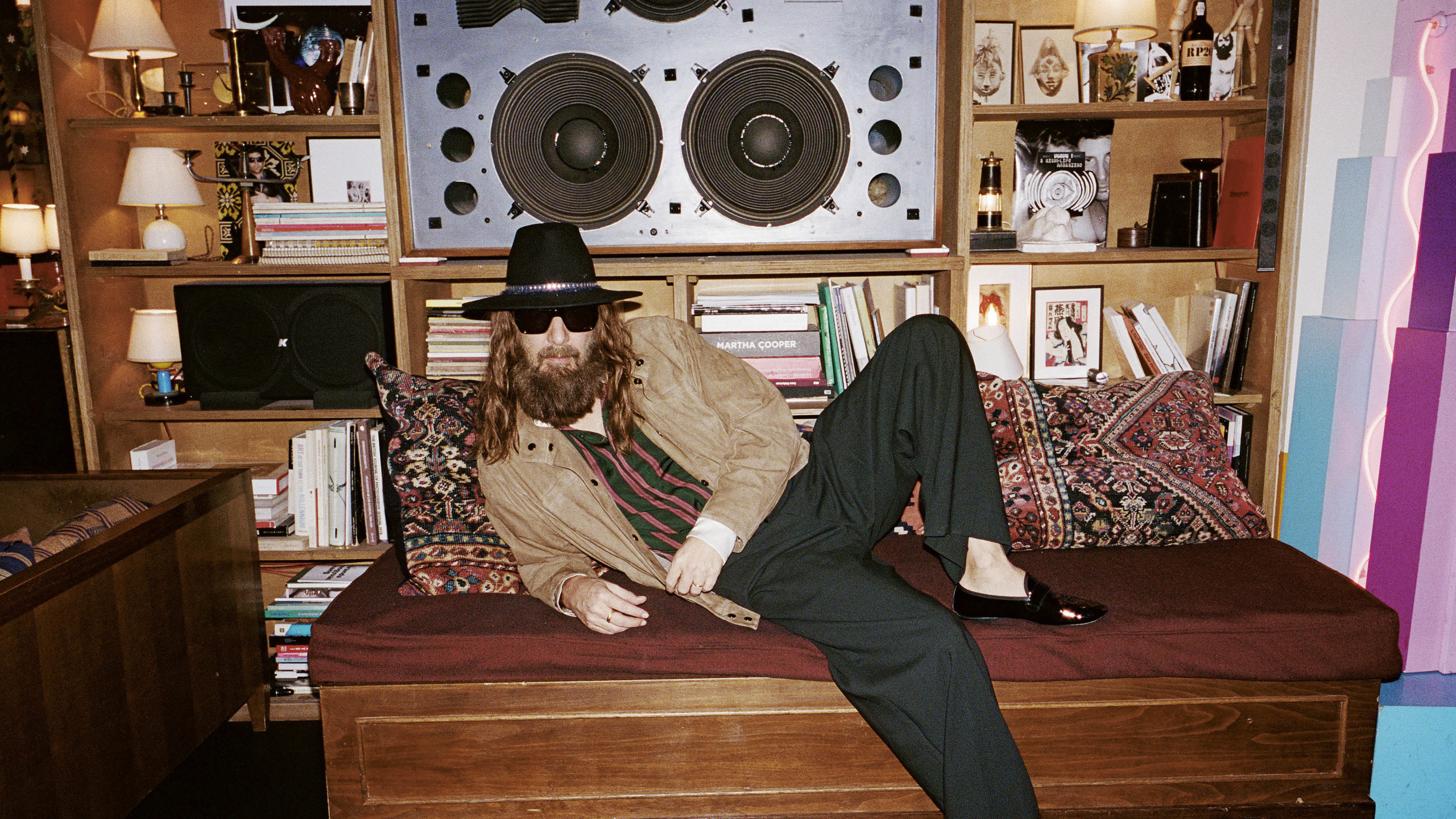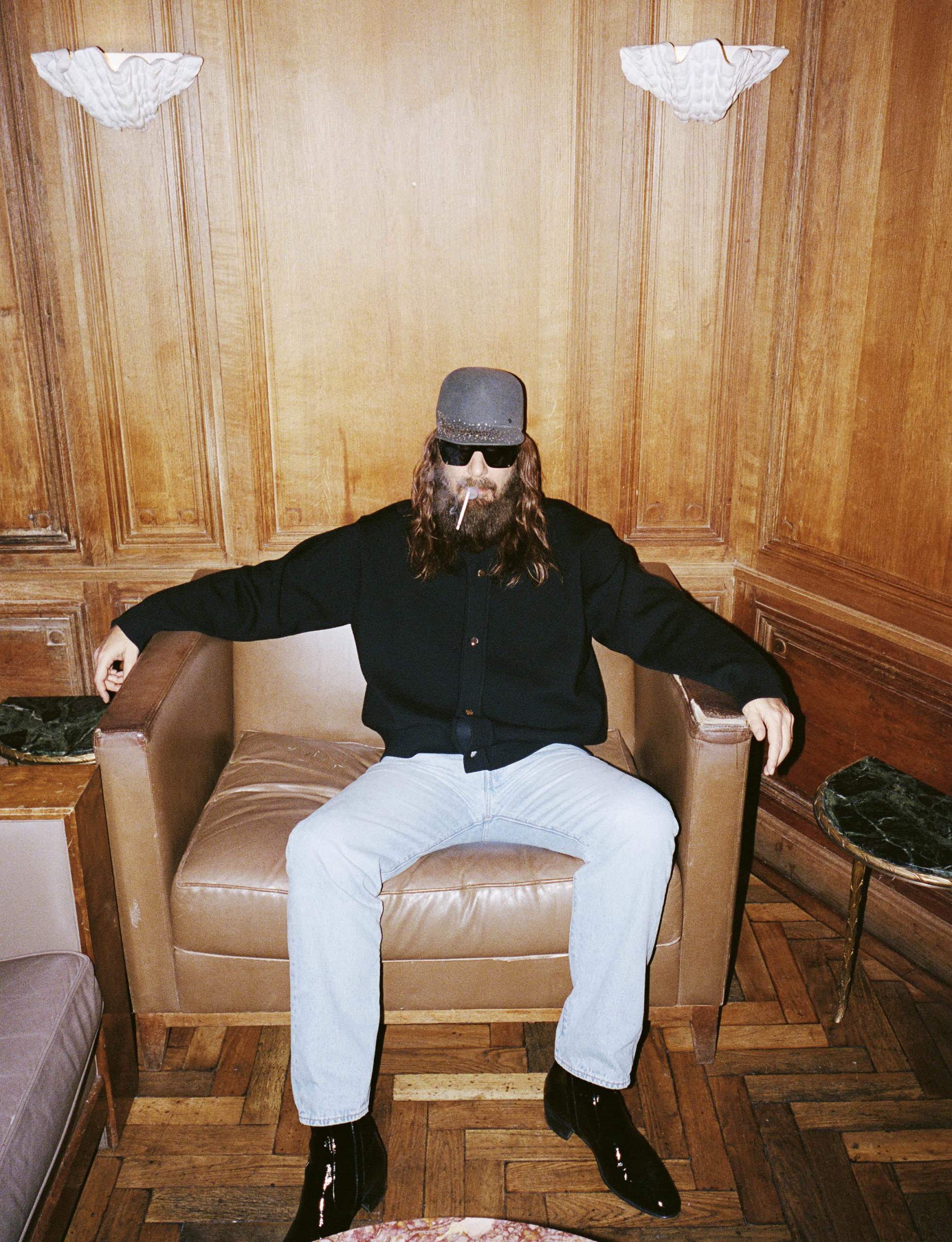 Parce que l’éloge de la douceur – thème de notre numéro SS26 – va souvent de pair avec un certain attrait pour la brutalité, autant y aller à fond dans le paradoxe. À la fois charismatique et éminemment sympathique, sophistiqué sans être précieux, Sébastien Tellier trace son sillon de musicien depuis 2001 et la sortie de son tout premier album L’Incroyable Vérité. Après avoir marqué pendant plus de vingt ans l’histoire de la pop française et internationale – des collabs avec Metronomy et Kavinsky, un album avec Dita Von Teese, ou encore plusieurs BO de films dont celle de Narco de Tristan Aurouet et Gilles Lellouche (2004) et, plus récemment, Libre de Mélanie Laurent (2024) –, le chanteur revient plus serein que jamais avec son nouvel album Kiss the Beast, sorti le 30 janvier dernier chez Because Music. Un nom d’opus tout en contradiction qui encapsule une fois de plus les notions de dualité et d’antagonisme que Tellier avait déjà pu aborder dans ses classiques précédents, tels que “Roche” ou “L’Amour et la Violence”. Pour ce nouveau projet ambitieux, toujours sur le fil, entre intime et grandiloquence, délibérément naïf ou paradoxalement épique, il s’entoure de grands noms comme Kid Cudi, SebastiAn, le légendaire musicien et producteur Nile Rodgers ou le producteur Oscar Holter, ayant beaucoup travaillé avec The Weeknd. Alors que le chanteur fête cette années ses 25 ans de carrière et installera sa Beast à l’Olympia les 16 et 17 mars prochains avant de partir en tournée, Mixte l’a rencontré pour une interview tout en délicatesse au sein du Book Bar de l’hôtel Grand Amour, à Paris.
