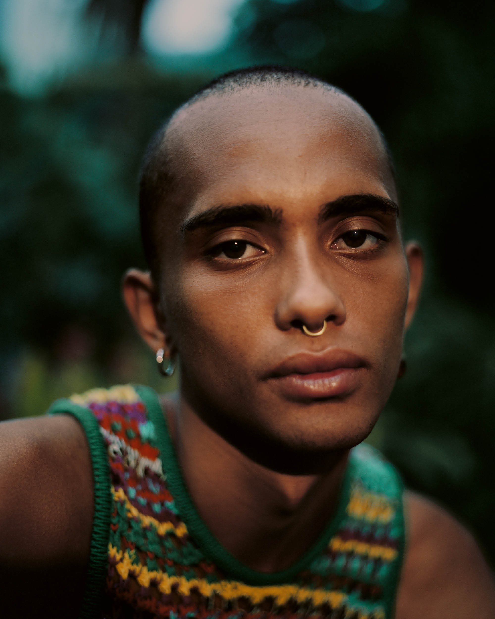 Peu à peu, un médium s’est imposé : celui du portrait. Simple, épuré, et toujours dans un environnement naturel, afin de rendre hommage à la flore et aux paysages envoûtants de La Réunion : “On aurait pu faire du reportage, capter l’effervescence de ce qui se passe sur l’île et adopter d’autres formes visuelles, mais on a choisi le portrait, parce qu’on voulait créer des figures de représentation. Des images fortes et visibles. Les afficher sur les murs, pour que les enfants les voient en passant et que la future génération puisse se reconnaître : découvrir des personnes créoles, queer, fières et puissantes. C’est ça le plus important, et tant mieux si ça résonne plus loin.” Présentée cet été au jardin des Tuileries, à Paris, l’exposition s’est envolée en août pour La Réunion, avant de poser ses valises en octobre à Rio, puis à São Paulo dans le cadre de la saison France-Brésil.