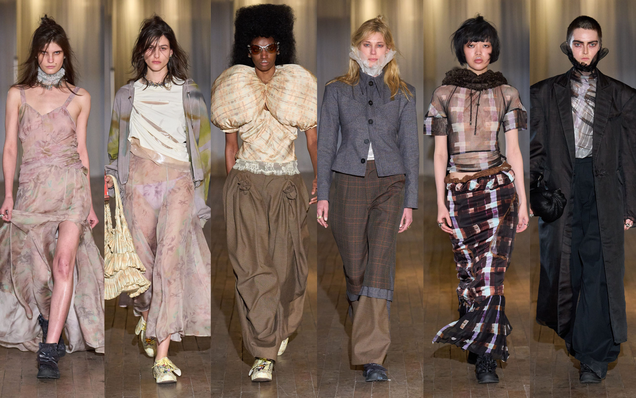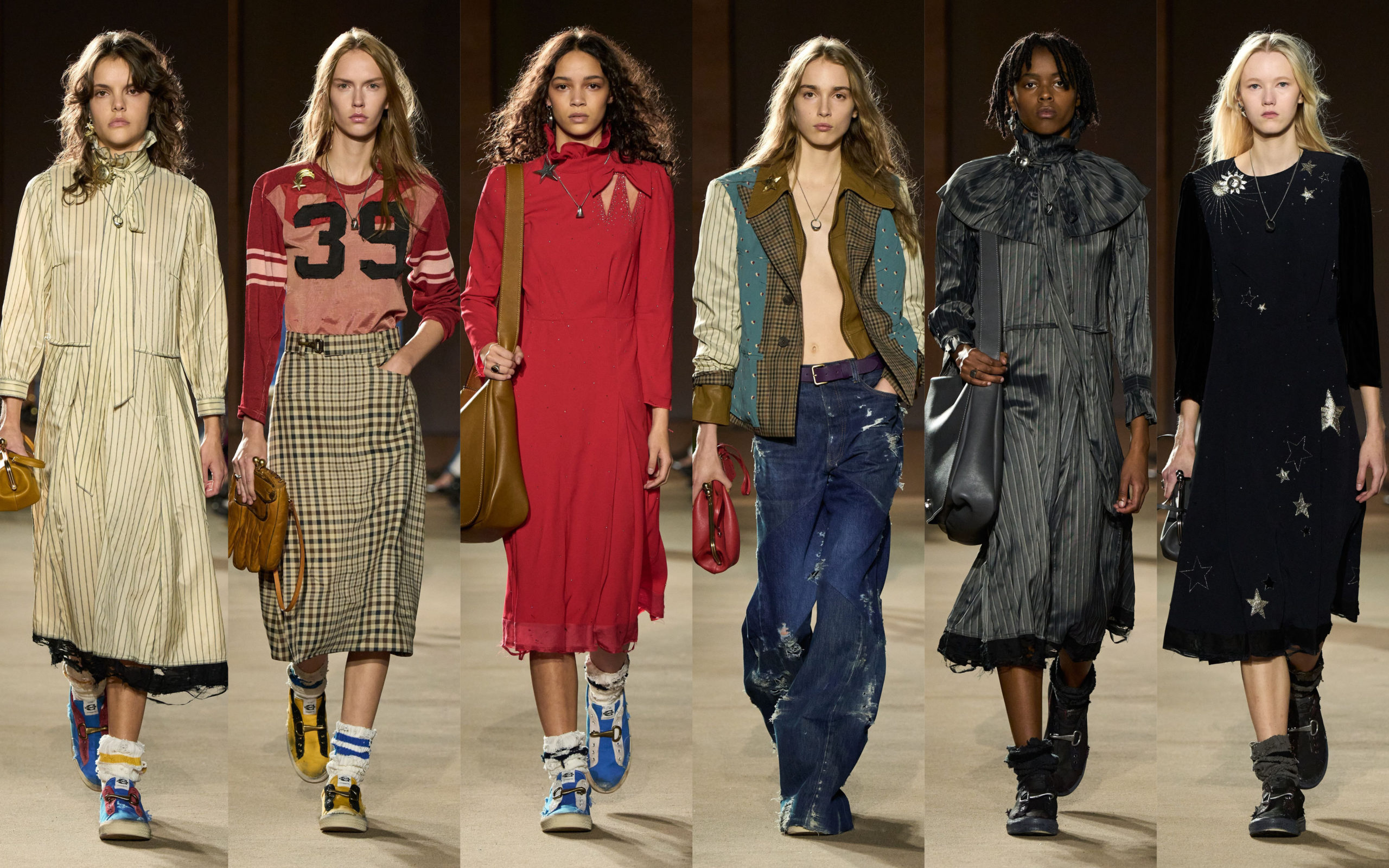 La mode doit-elle toujours regarder vers l’avant ? Pour Marc Jacobs, cette saison, la réponse est non. Présentée hors calendrier, sa collection “Memory. Loss”, revisite le passé à sa manière; en réinventant ses propres archives mais aussi celles d’autres créateurs, comme Miuccia Prada (printemps-été 96), Helmut Lang (automne-hiver 95) ou Yves Saint Laurent (couture 65). Sans nostalgie mais avec déférence, comme un hommage à ce qui le nourrit, revient en filigrane dans son travail ou ses envies : des tailleurs sages et grammaire Office Siren comme à la fin des 90’s, beaucoup de lignes droites, des jupes tube, des couleurs sombres, avec quelques touches de couleurs ou de sequins, comme des souvenirs joyeux qui pop dans son esprit. De loin, tout semble normal mais à y regarder de plus près, les tailles sont flottantes et pensées pour plonger les mains, les minijupes sont très hautes, les cols légèrement décalés… Comme si on avait déformé les souvenirs pour les réinterpréter à notre avantage.Selon l’adage, “what comes around goes around” et Marc Jacobs l’a très bien compris.