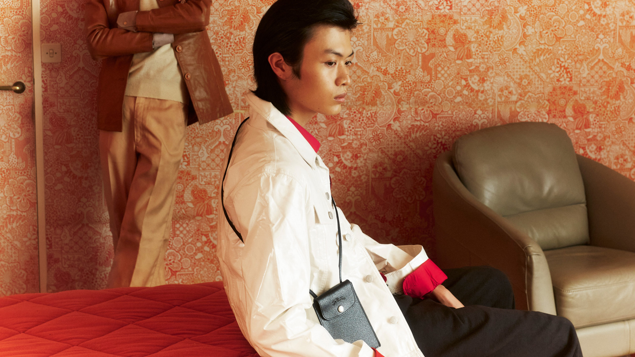 Une feuille, pliée en deux et couverte de l’écriture chaotique de ma tante, me donne des indices : “mixité, périphérie, singularité, intemporalité, genderless, urbain, objet, icône”. Plusieurs ratures et gribouillis, aussi, des “posé ou naturel ?” “gens ou ami·e·s ?” “signe de reconnaissance ?” “partir de l’objet pour aboutir à la trajectoire”, “quelle définition de l’identité : l’époque ? La mode ?”
